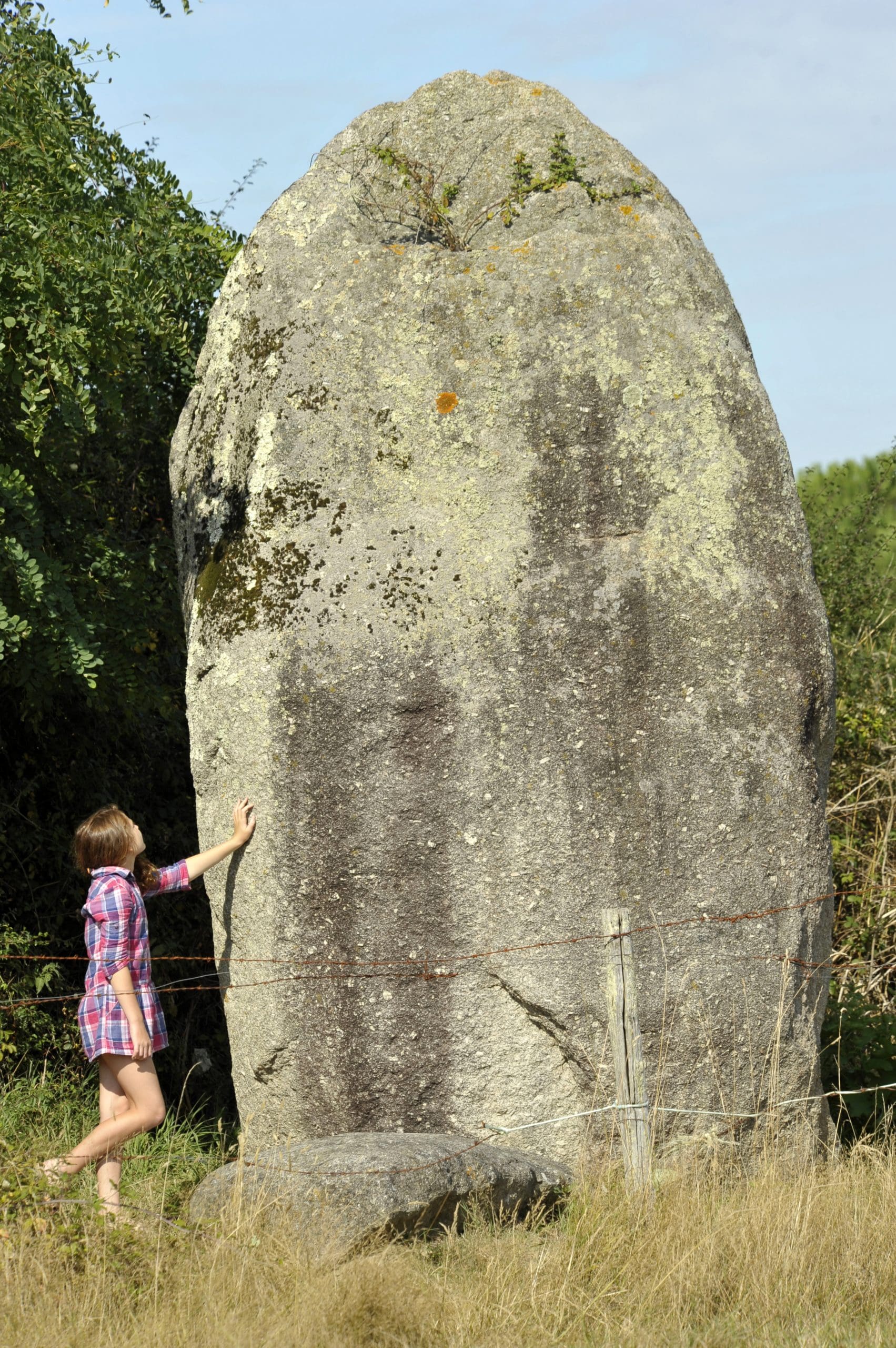 – Les menhirs de la Pierre : cet alignement de 3 menhirs est situé en bordure de route. Classés Monument Historique en 1889, suite à deux campagnes de fouille en 1991 et 1992, il a pu être reconstitué dans sa forme originelle par le relevage des deux petites menhirs. Quant au menhir principal, il se dresse à 4,50 m et pèse 42 000 kg.