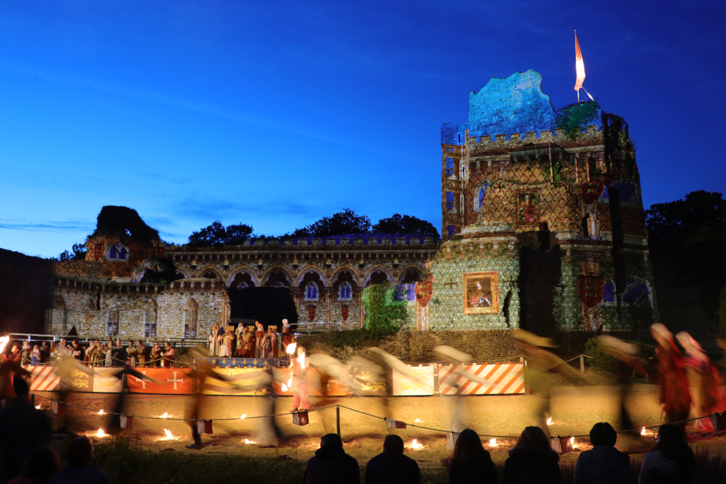 Guillaume Le Chauve, devient le premier seigneur de Talmont. Avec lui, une enceinte est élevée épousant la forme du promontoire rocheux. Puis les espaces sont organisés avec la construction de bâtiments : un grand logis seigneurial avec appartements, puis une chapelle et une tour. Suite au remariage d’Aliénor d’Aquitaine avec le roi d’Angleterre Henri II Plantagenêt, leur fils Richard Coeur de Lion prend le titre de Prince Talmont.
