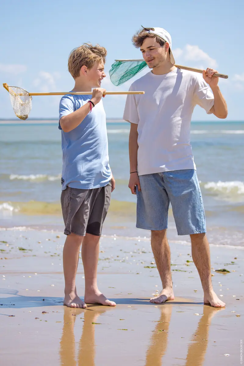 À Talmont-Saint-Hilaire, sur la plage du Veillon, un site exceptionnel pour la pêche à pied, vous pouvez pêcher de la crevette avec un haveneau dans les mares ou profiter des rochers qui se découvrent à marée basse pour dénicher bigorneaux ou berniques.