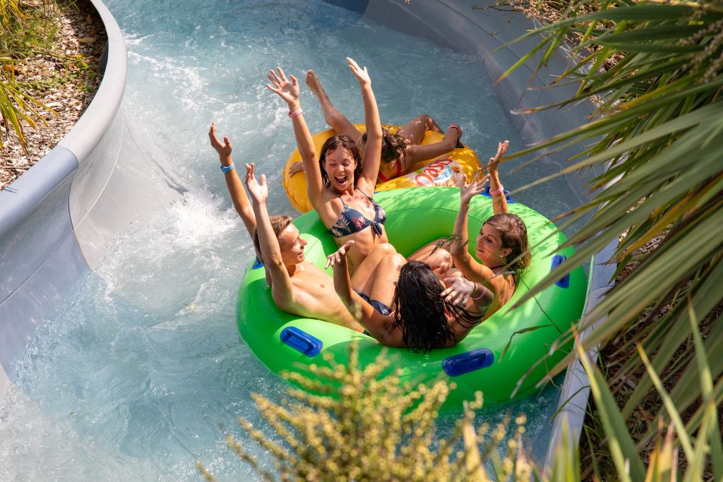 Des espaces pour petits et grands, amateurs de sensations fortes ou à la recherche d’un moment de détente : 16 toboggans, un lagon avec cascade, une piscine à vagues, 400 mètres de rivières sauvages, des espaces privatisées avec jacuzzi, …Tout cela les pieds dans le sable blanc et entouré d’une végétation luxuriante.