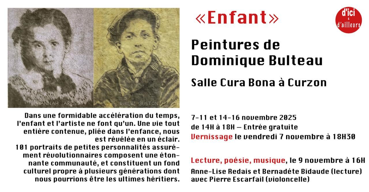 Vernissage le vendredi 7 novembre à 18h30 - Expositions du 7 au 11 et du 14 au 16 novembre - Peintures de Dominique Bulteau - Lecture, poésie, musique le 9 novembre à 16h