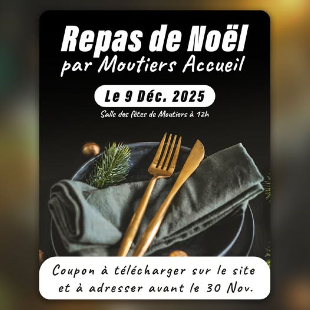 Menu : Apéritif et ses mignardises/assiette festive de Noël/trou moutierrois/blanquette de la mer et ses légumes/duo de fromages/assiette gourmande/café et vins.