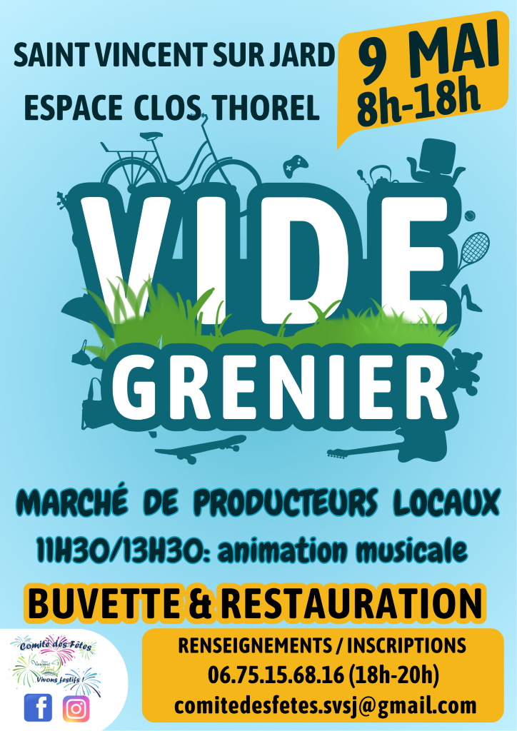 Premier vide-grenier organisé par le Comité des Fêtes de Saint Vincent sur Jard .