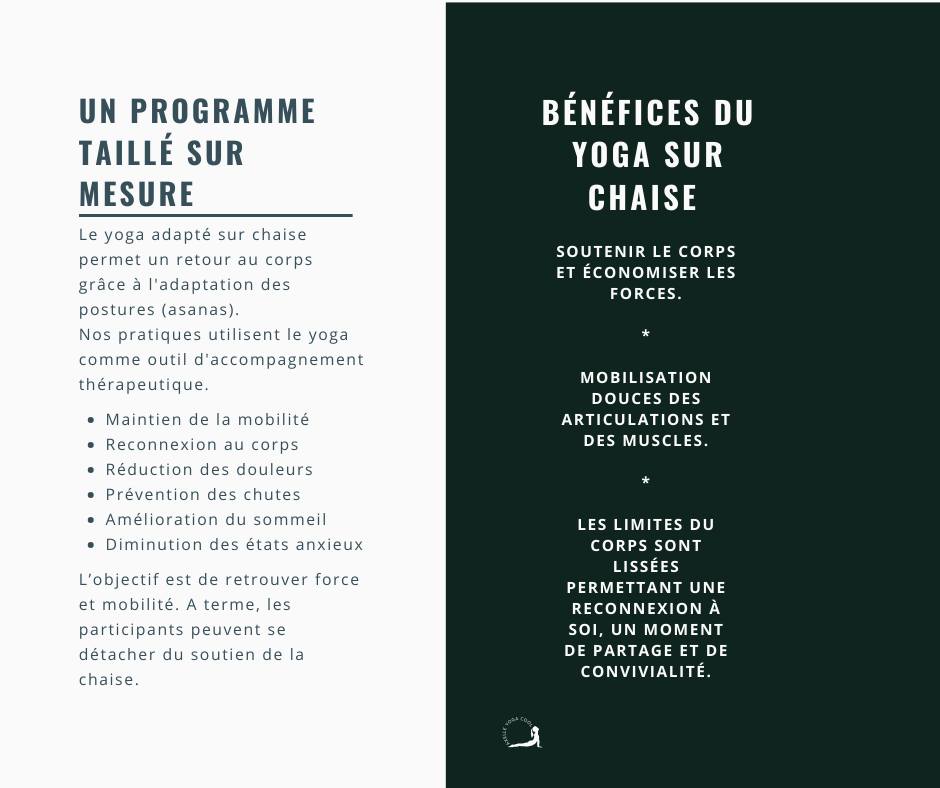 Découvrez désormais le Yoga sur chaise pour rendre le yoga encore plus accessible, plus doux et plus cool ! Grâce à la chaise, c’est le yoga qui s’adapte à vous, pas l’inverse.