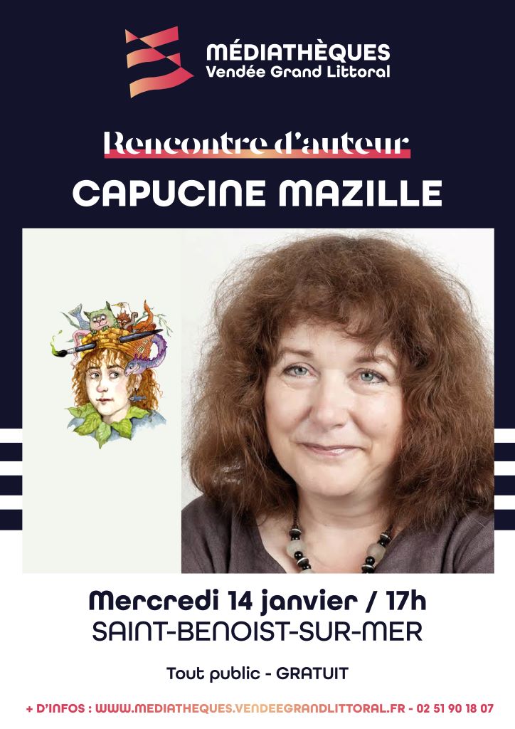 Après son atelier à la médiathèque de Saint Benoist sur Mer, venez rencontrer l’illustratrice Capucine Mazille.
