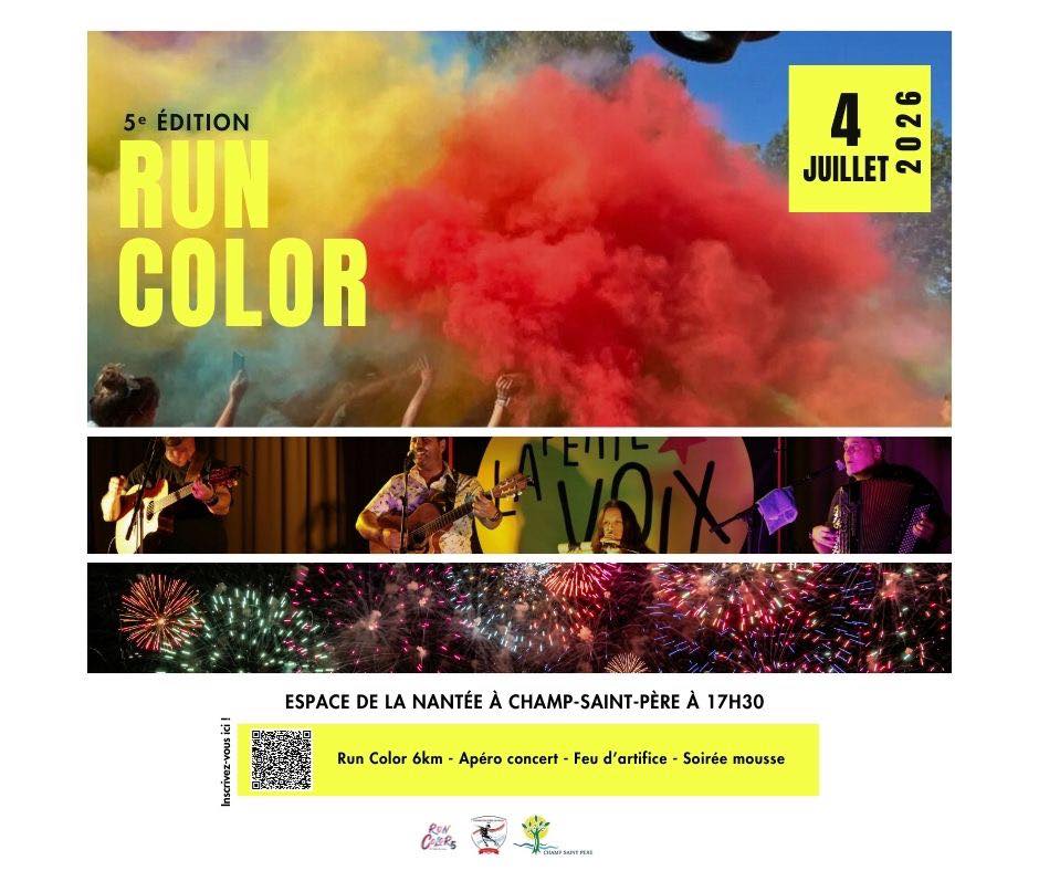 5 eme édition de notre « run color » avec de nouvelles surprises , course ou marche de 6 kilomètres , 100% plaisir et fêtes sans chronométrage sur la commune de Champ St Père suite à un échauffement musical et rythmé par notre animateur.