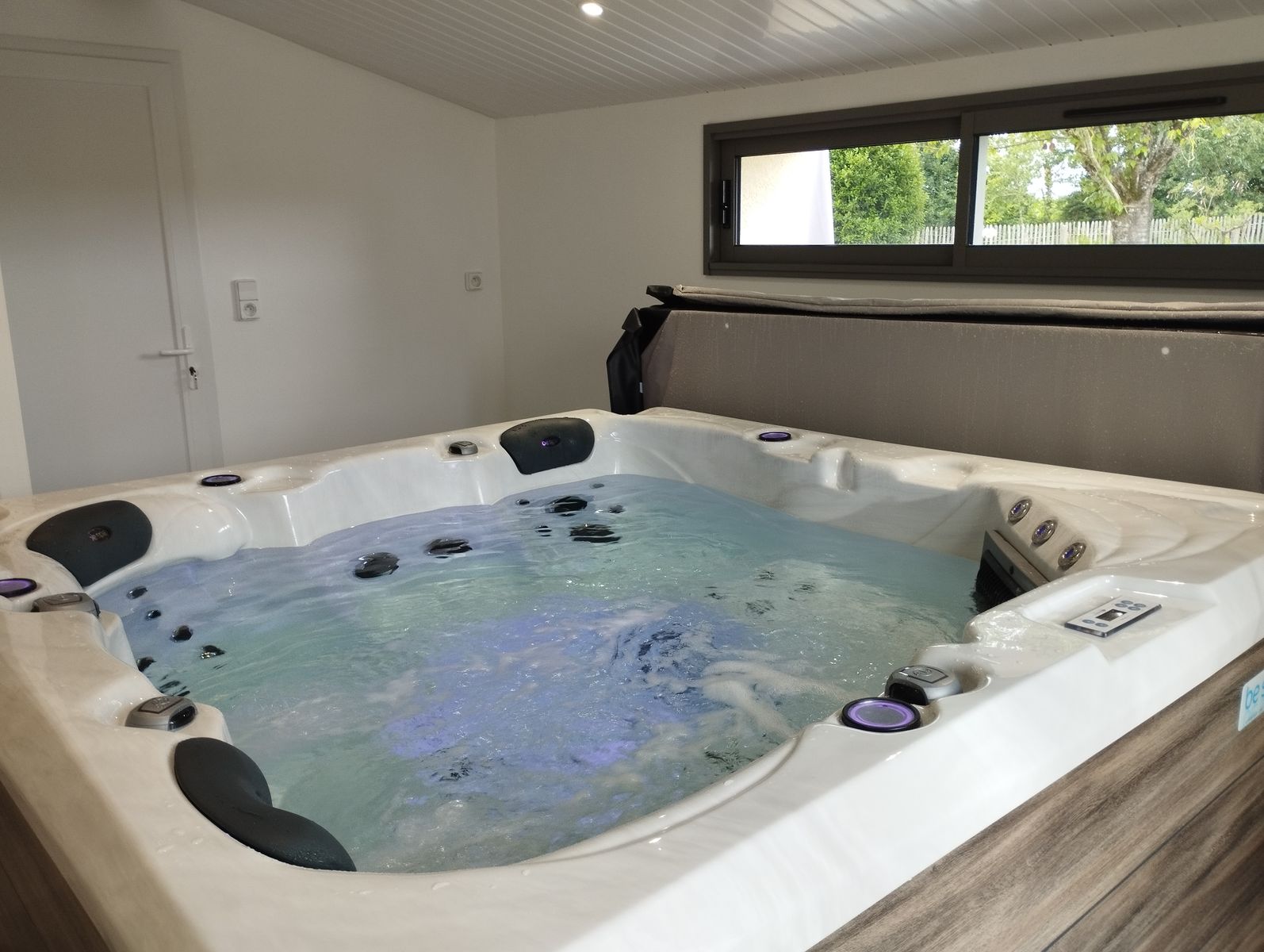 NOUVEAUTÉ 2025 : retrouvez notre spa 5 personnes avec douche attenante , dans son espace sécurisé au sein du gîte.