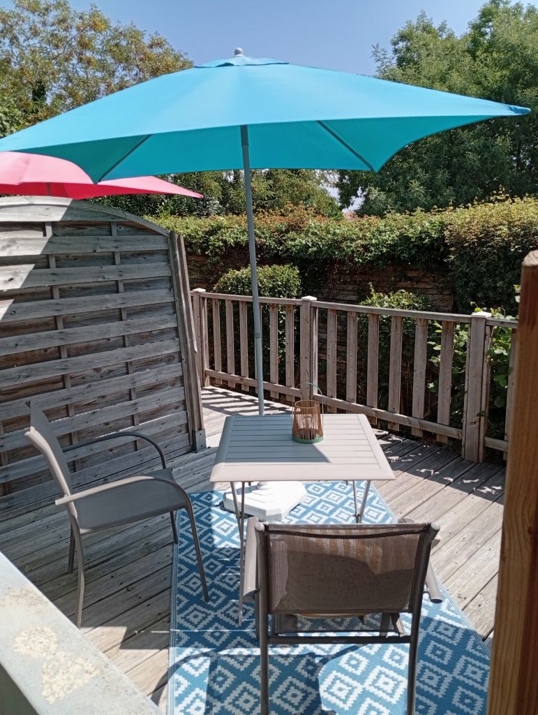 Chaque hébergement bénéficie d’un accès privatif donnant sur une terrasse en bois individuelle. À l’arrière, un jardin commun avec transats, barbecue et terrain de pétanque, vous attend pour partager des moments conviviaux en plein air.