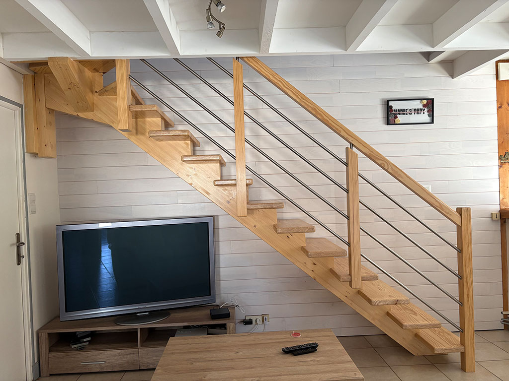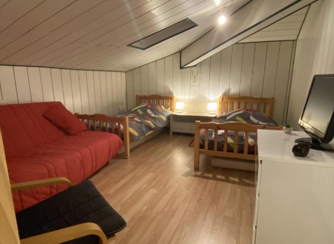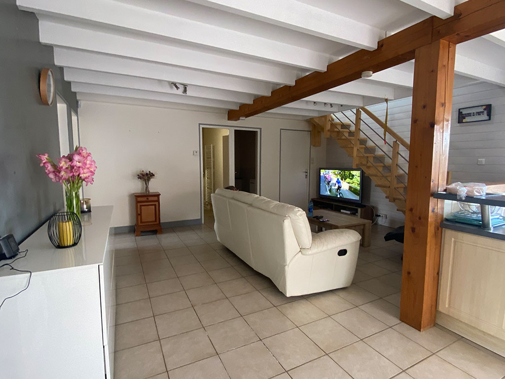 Elle comprend 3 chambres spacieuses, (deux au rez de chaussée équipées d’un lit de 160×200 et une chambre en mezzanine avec deux lits de 90×190), un grand séjour/salon au sud et très lumineux, un coin télé avec une box wifi, une cuisine ouverte entièrement équipée, une salle d’eau avec douche, un WC séparé, une arrière cuisine et un garage où sont installés lave linge et sèche linge.