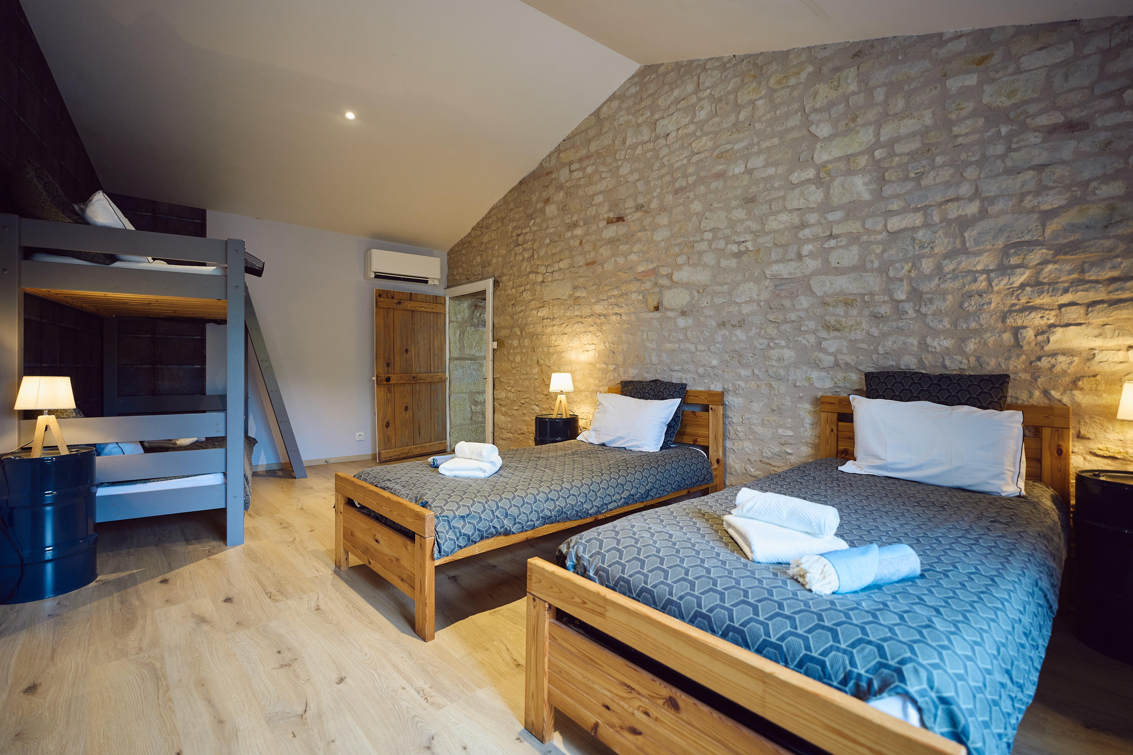 Devant la maison, une grande cour vous permettra de stationner facilement jusqu’à six voitures. À disposition également un garage de 65m² pour stationner votre véhicule ou pour stocker votre matériel (vélos, planches de surf, coffre de toit, …). Une borne de recharge électrique est disponible pour vos véhicules.